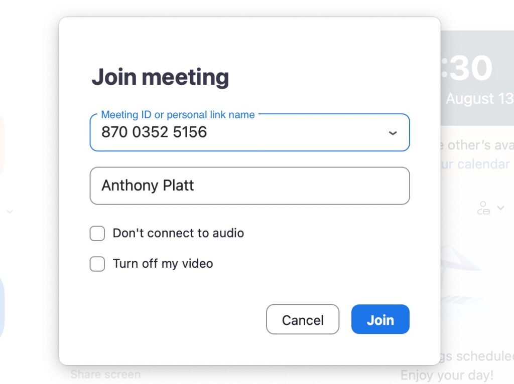 If you do not have Share your video as your default for Zoom meetings then the screen will dark and enable you to turn on your video, which you should do before you tap or click the Join button.