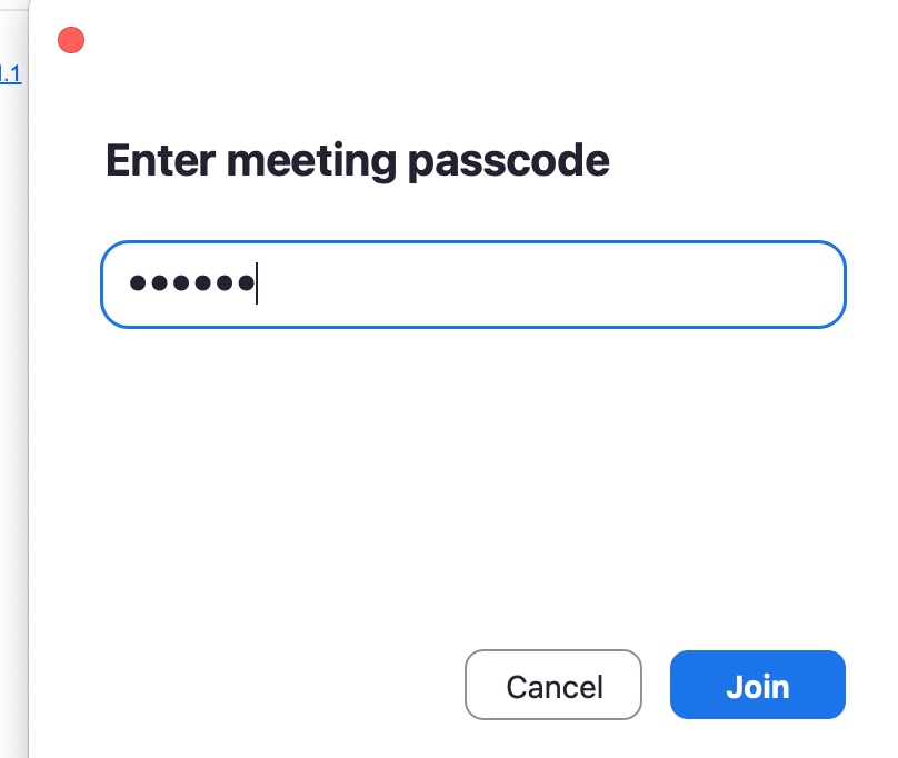 Enter the Meeting ID and your name the the boxes as shown and then tap or click the Join button to display the Enter meeting passcode screen as shown now.